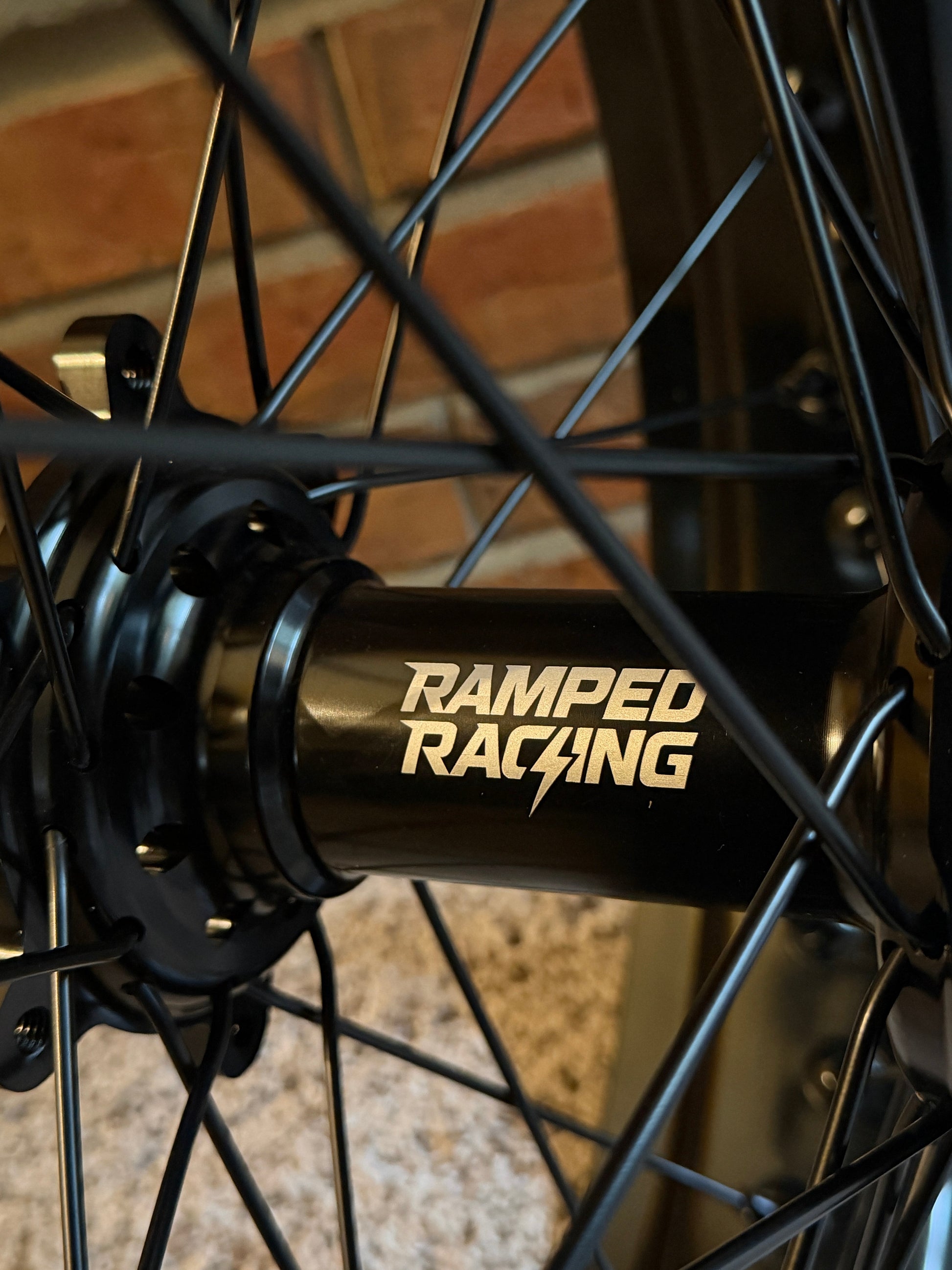 The smaller 17in rims provide a comfortable height. The increased with enhances traction, providing better control, especially during wheelies. These are the widest supermoto rims possible for the surron ultra bee.
