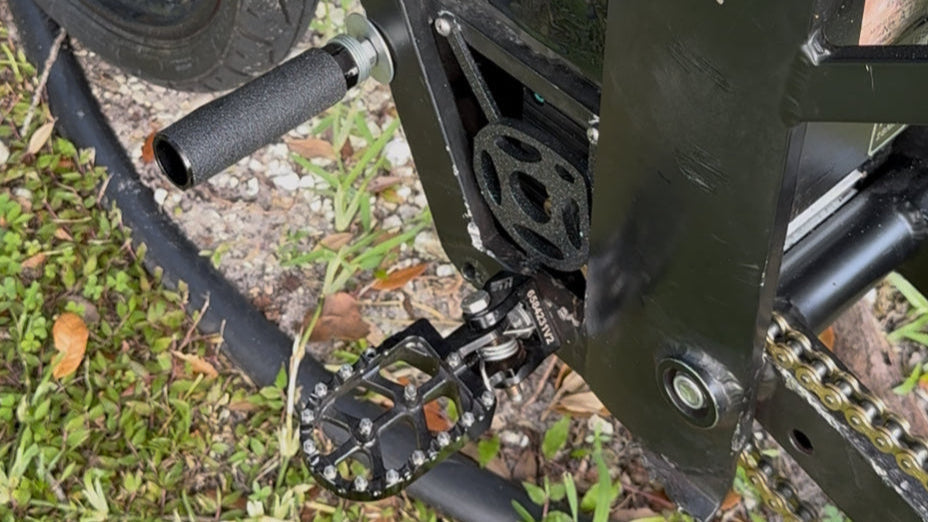 Makes learning wheelies easier by giving your foot something to pull against